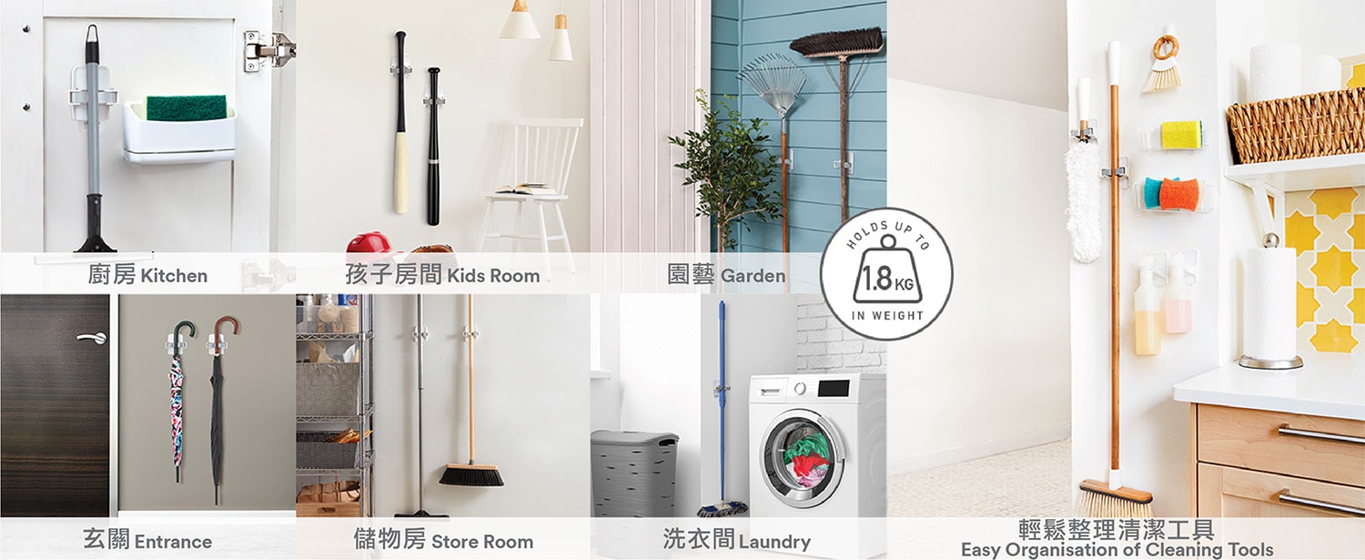 無痕™ 拖把夾非常適合在家居不同角落整齊存放掃把和拖把。將拖把手柄推入無痕™ 拖把夾便可夾好,使用時只要方便地一拉取出。快快用無痕™ 拖把夾將廚房、浴室、士多房的拖把統統整理好吧!運用創意,您還可以用它來整理其他物品如傘子和球拍呢!設計獨特的無痕™膠貼能牢固貼於多種平滑的表面,如瓷磚、木、金屬和堅固的乳膠漆牆面等,更神奇的是,無痕™膠貼可以一拉移除而不留膠跡或釘孔。無痕™掛鈎還可以循環使用,只需換上一片新的膠貼便可以,簡單又環保!