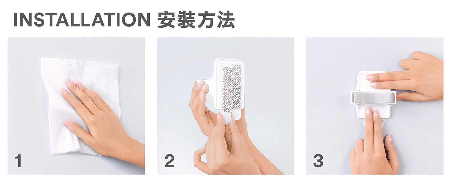 無痕™拖把夾是完美的解決方案!您可以輕鬆地將它固定在壁櫥或洗衣間的牆壁上,無需任何鑽孔卻牢牢固定到位,直到您決定將它拆下。 無痕™拖把夾可穩妥地固定在多種平滑表面,包括瓷磚、木、堅固的油漆牆面等。當要移除時,拖把夾可以潔淨地移除,不會留下任何鑽孔、痕跡、殘膠或污漬。您還可以使用無痕™膠貼一次再一次地重複安裝、移動和重新使用它。