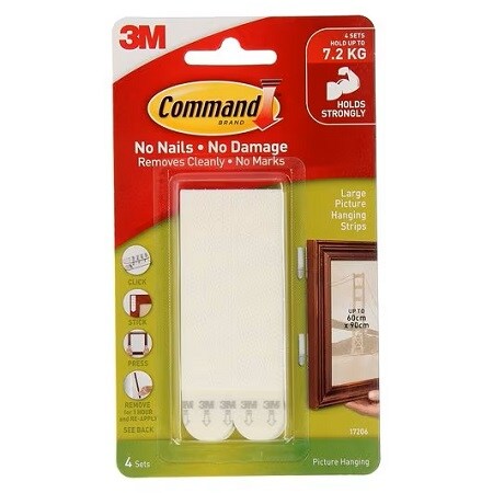 View ProductForget about nails, screws and tacks, Command™ Picture Hanging Strips are fast and easy to hang – no more holes to worry about! Strips ‘snap’ and lock together, providing a secure strong hold.