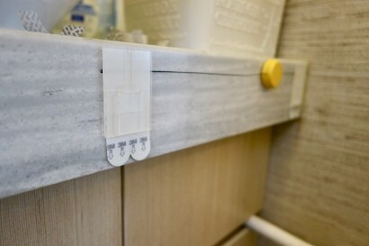 5)在預設位置貼上無痕™ 浴室防水金屬飾面手巾架,按壓背座30秒加固,靜置1小時後便可掛上毛巾。