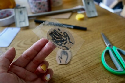 2)於小標誌上封上透明膠紙,以作防水用途。