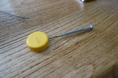 3)在樽蓋的左右兩邊用尖頭筆刺開一個小洞。