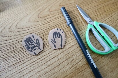 1)分別在紙皮畫上一隻污糟的手,一隻乾淨的手,沿線剪下,成為兩個獨立的小標誌。