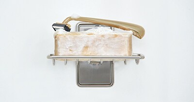 步驟2. 用無痕™ 浴室防水金屬飾面肥皂架放置肥皂和刮鬍刀以遠離浴室地板。