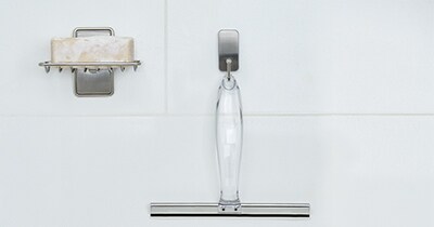 步驟3. 用無痕™ 浴室防水金屬飾面掛鈎掛起水刮,可以讓淋浴後的清潔變得輕鬆。