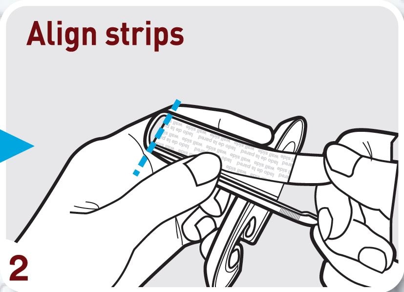 將膠貼遂一貼於背板上,先將平端對齊背板上端的虛線,然後沿垂直虛線貼好膠貼。