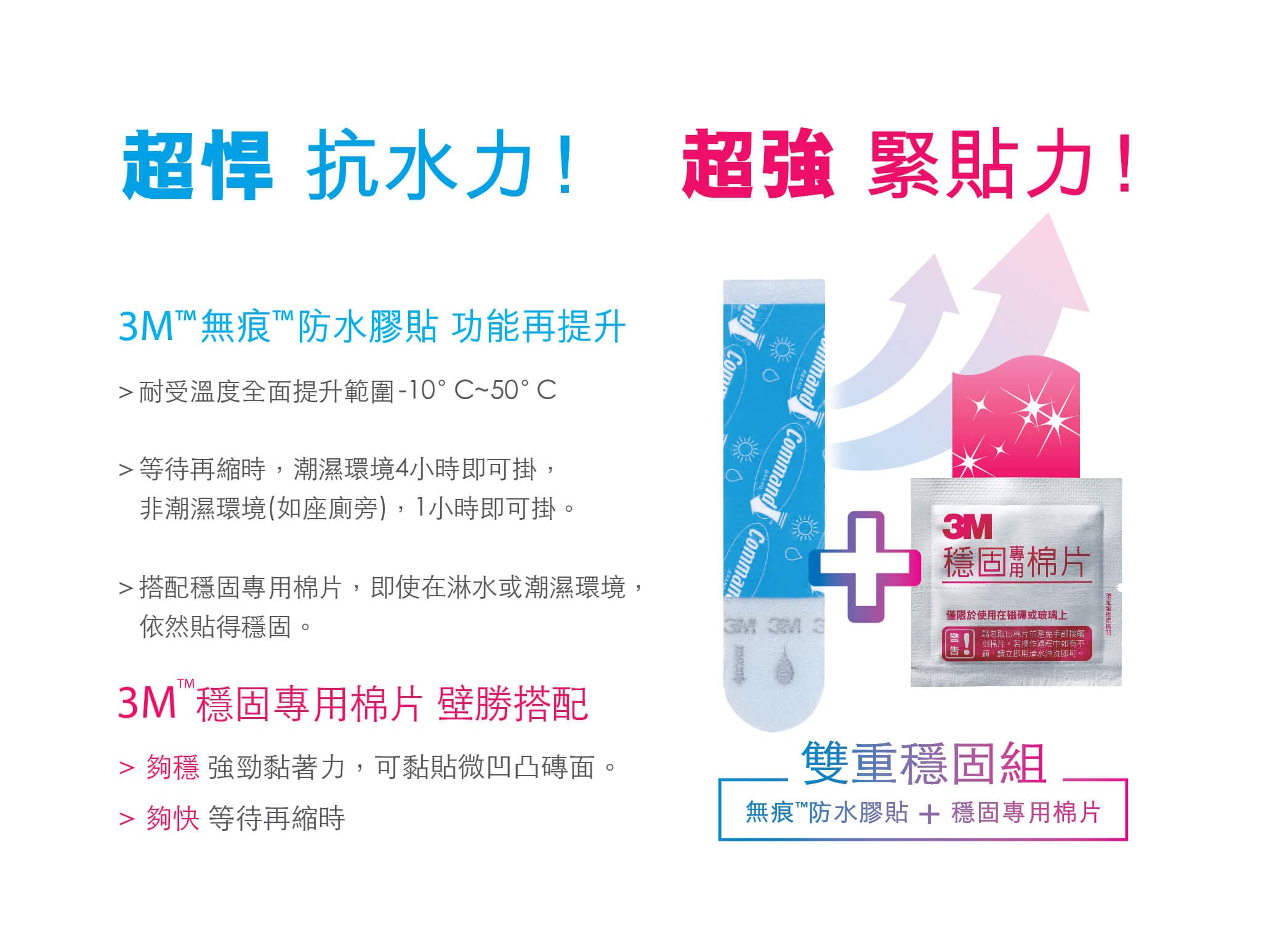 | 破璃、光滑瓷磚、微粗糙磚面 | 先清潔表面*,再使用包裝內附的穩固專用綿片由上往下擦拭一次欲貼之處,待乾。 *如果牆壁表面有油脂污漬,可以使用海綿或軟布配合中性清潔劑清洗後,以清水洗淨並擦拭乾淨。 |