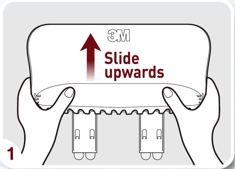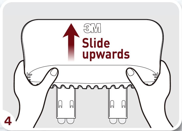 輕扶背板左右兩端,慢慢地將膠貼垂直向下拉長最少38厘米,直至背板與膠貼鬆開。