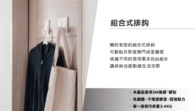 設計上可依使用者需求添購,組合併排可當排鈎使用
