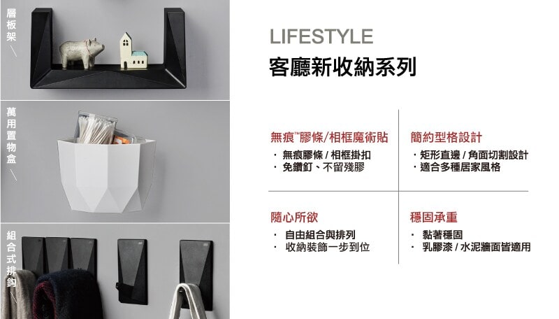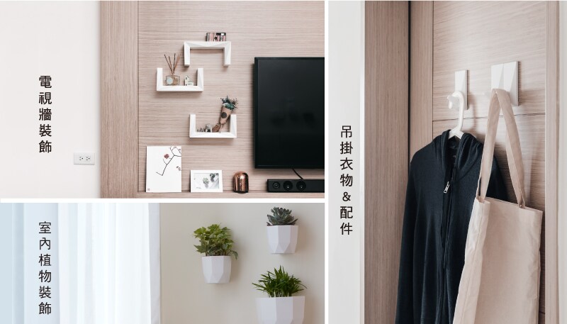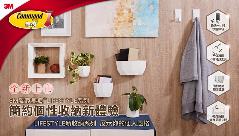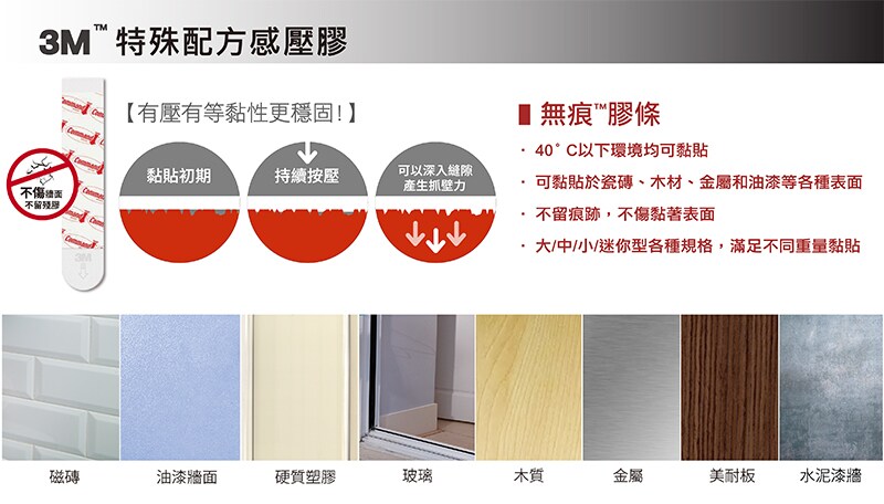 使用3M獨家無痕™膠貼,免鑽釘、黏力穩固,去除時不傷黏貼表面、不易留殘膠。