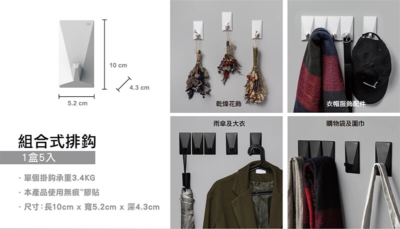 • 自由組合 一盒5個掛鈎
