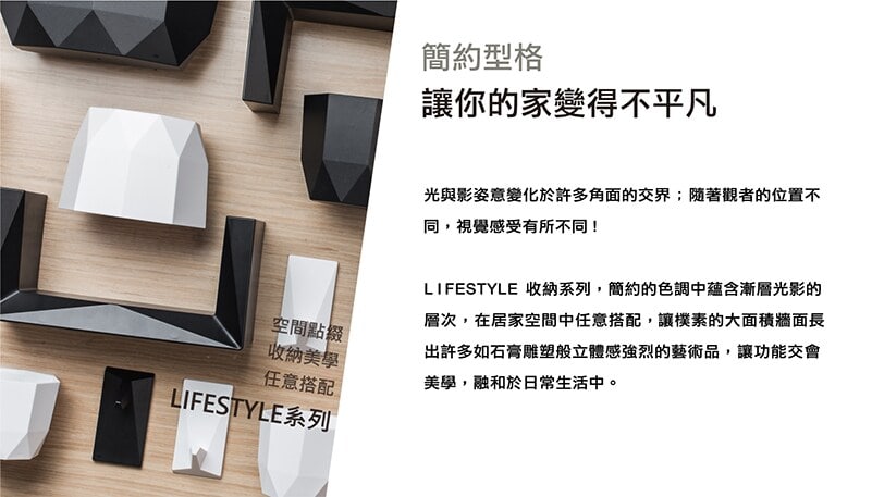 • 矩形直邊配上角面切割的設計元素,可以有延伸畫面的效果,讓居家佈置更有風格